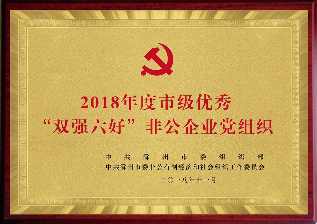 在上級(jí)黨組織的關(guān)心指導(dǎo)下,集團(tuán)黨建工作多次在非公黨建考評(píng)中取得榮譽(yù),先后榮獲滁州市、經(jīng)開(kāi)區(qū)非公企業(yè)“火炬黨組織”“先進(jìn)基層黨組織”、滁州市非公企業(yè)黨組織“示范點(diǎn)”、省“雙強(qiáng)六好”非公企業(yè)黨組織、全省首批“小個(gè)專(zhuān)”黨建示范街區(qū)、滁州市“紅色物業(yè)”試點(diǎn)單位等榮譽(yù)。