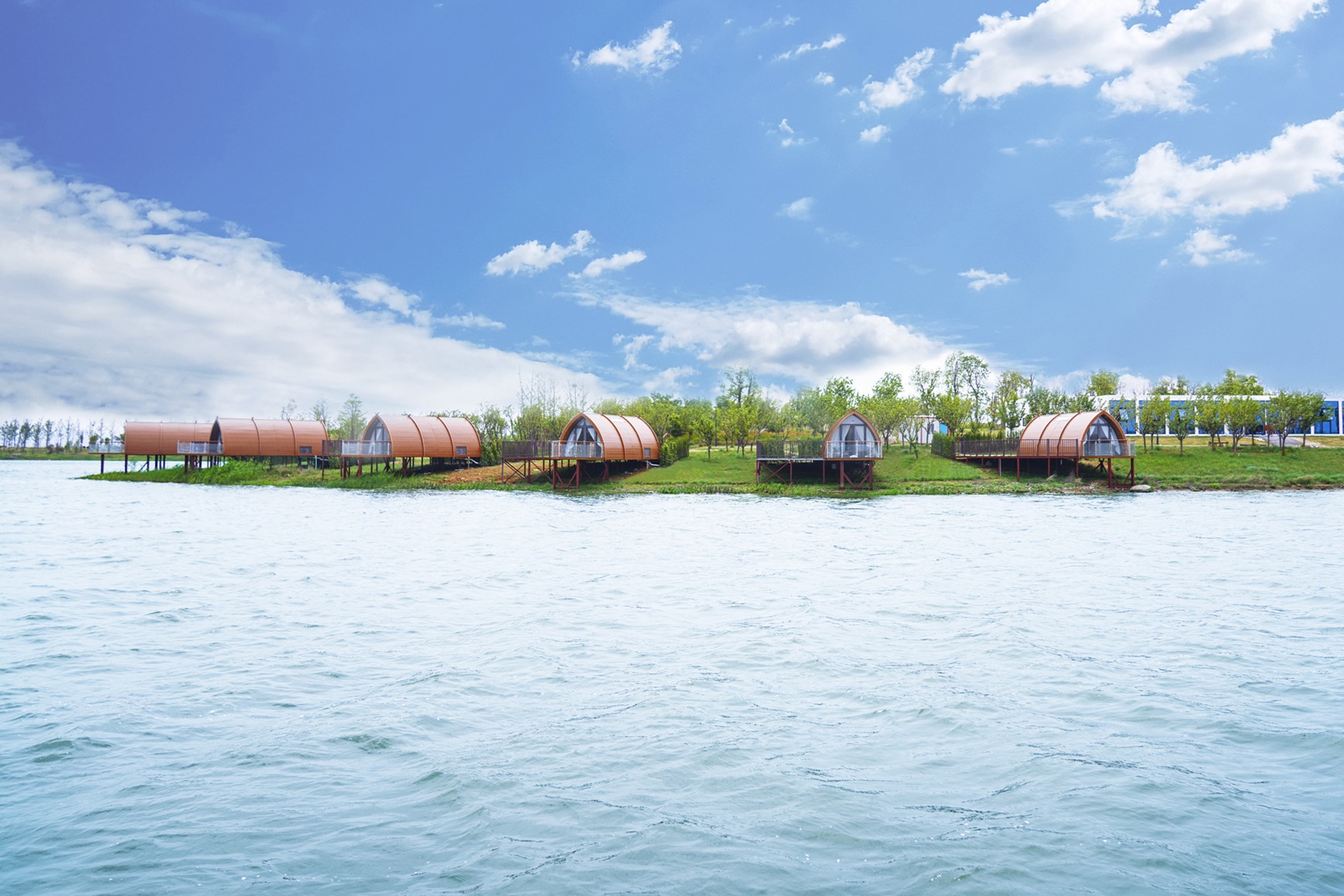 金鵬皇慶湖公園旅游度假區(qū)總投資2億元,融合“生態(tài)+文旅”的理念,按照“一個中心+四個組團+兩條游線”進行空間布局,規(guī)劃了戶外露營、臨水民宿、兒童游樂、水上運動、特色餐飲等豐富的休閑娛樂項目,同時,深挖園區(qū)周邊鄉(xiāng)鎮(zhèn)風土人情、物產(chǎn)資源,與美麗鄉(xiāng)村建設融為一體,致力于構建集“吃、住、行、游、購、娛、產(chǎn)、商、學”為一體的“南京都市圈野奢露營微度假綜合目的地”。