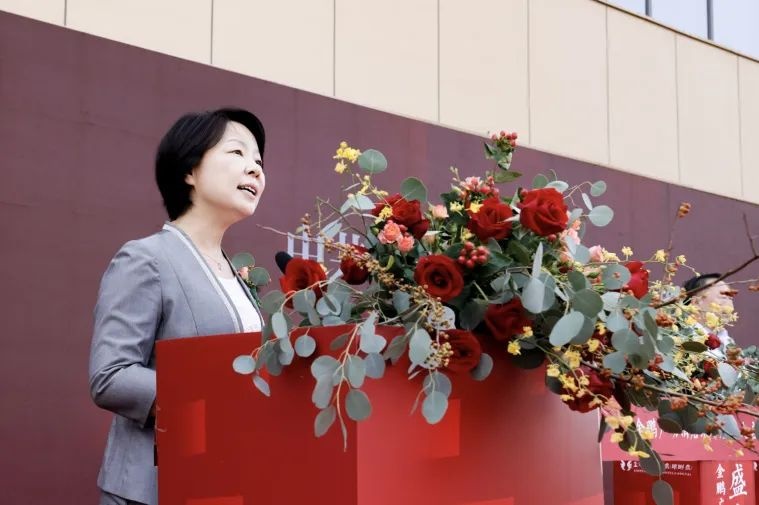 滁州市瑯琊區(qū)委書記焦艷致辭,她表示,瑯琊是滁州的中心城區(qū),也是滁州的經濟、文化中心、交通中心。近年來,在市委市政府堅強領導下,在社會各界關心支持下,瑯琊區(qū)全力以赴拼經濟、抓項目、興產業(yè)、惠民生,全力跑出經濟社會高質量發(fā)展加速度。特別是,今年以來,瑯琊堅持商貿興區(qū),全力提振消費,激發(fā)消費新活力。去年十一,在這里見證了瑯琊金鵬玖玖廣場的盛大開業(yè),一年時間,商場客流如云、人氣火爆,深受周邊群眾的喜愛和歡迎。今天,又相聚于此,共同見證瑯琊金鵬廣場酒店開業(yè)運營。作為滁城北部區(qū)域首家五星級標準酒店,僅用2年時間就完成了建設、裝修、運營各項工作,充分展現(xiàn)了瑯琊堅定不移優(yōu)化營商環(huán)境的決心,也彰顯了金鵬高度的社會責任感。隨著酒店商場資源整合、業(yè)態(tài)聯(lián)動,必將樹立起瑯琊新區(qū)商業(yè)新形象,促進瑯琊商業(yè)價值再升級,為持續(xù)升騰的城市煙火氣再添活力。