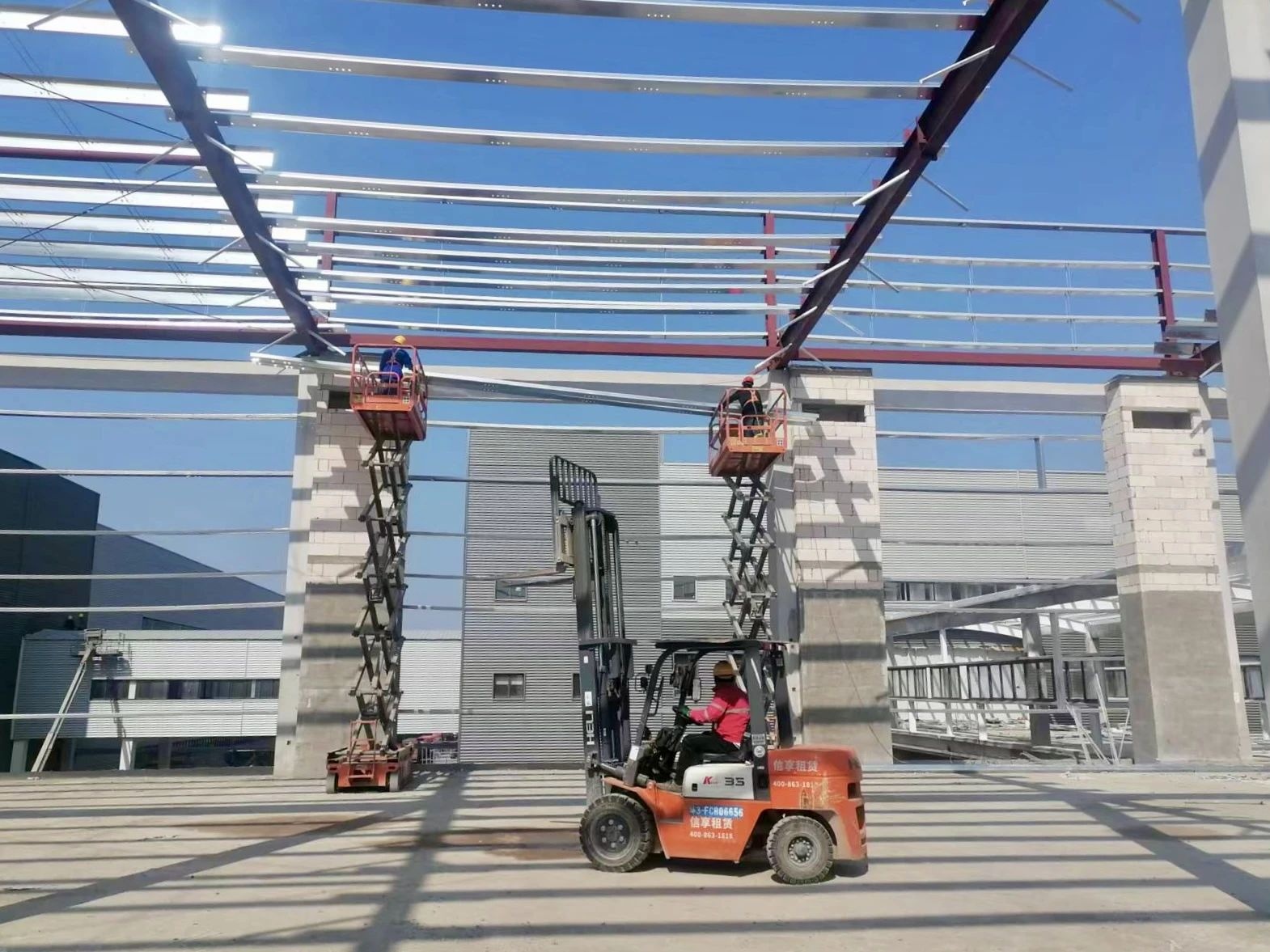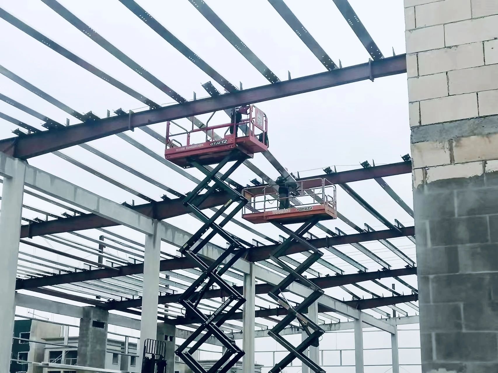 廠房鋼結(jié)構(gòu)施工作為建設(shè)中的重難點(diǎn),項(xiàng)目鋼結(jié)構(gòu)吊裝和搭建,共涉及800余根鋼柱,1800余根鋼梁,總用鋼量達(dá)8800噸,以成品智慧物流廠房為例,整體結(jié)構(gòu)由單層鋼結(jié)構(gòu),雙跨雙坡鋼屋架組成,單榀桁架跨度已達(dá)到22.5米,單根構(gòu)件最大重達(dá)1.2噸。為保證吊裝作業(yè)的順利進(jìn)行,項(xiàng)目團(tuán)隊(duì)及時(shí)編制專項(xiàng)施工方案,采用最大100噸汽車吊進(jìn)行抬吊,并組織專家論證一次通過,順利實(shí)施,啃下施工技術(shù)“硬骨頭”,為推進(jìn)工程建設(shè)提供堅(jiān)實(shí)保障。