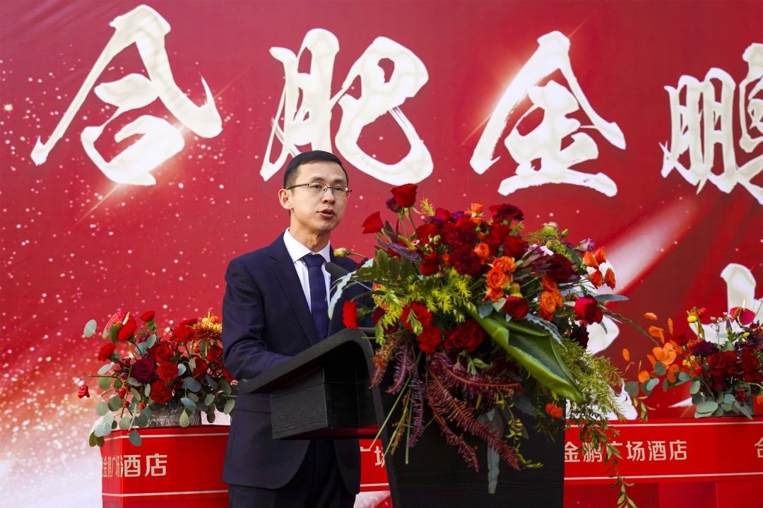 金鵬控股集團副總裁朱林代表公司致辭,他表示,金鵬擁有豐富的酒店、商業(yè)運營經(jīng)驗和成熟專業(yè)的運營服務(wù)團隊,目前金鵬僅餐飲部就擁有1500名廚師,擅長徽菜、粵菜、川菜等菜系制作。作為金鵬旗下“鵬生活”板塊的新作品,合肥金鵬廣場酒店地理位置優(yōu)越,交通便捷,是一家提供餐飲、住宿、會議、宴會等多功能全服務(wù)為一體的精品商務(wù)型酒店。酒店整體建筑風格傳承自新中式,且擁有合肥最大的光伏幕墻外立面。酒店必將在各位領(lǐng)導(dǎo)和朋友的關(guān)心指導(dǎo)下,以優(yōu)質(zhì)的服務(wù)回報社會各界。金鵬也將始終堅持死磕品質(zhì)的工匠精神、與時俱進的創(chuàng)新精神,專注提升服務(wù)品質(zhì),全力以赴,助力城市建設(shè)發(fā)展,為區(qū)域經(jīng)濟繁榮貢獻一份金鵬力量。