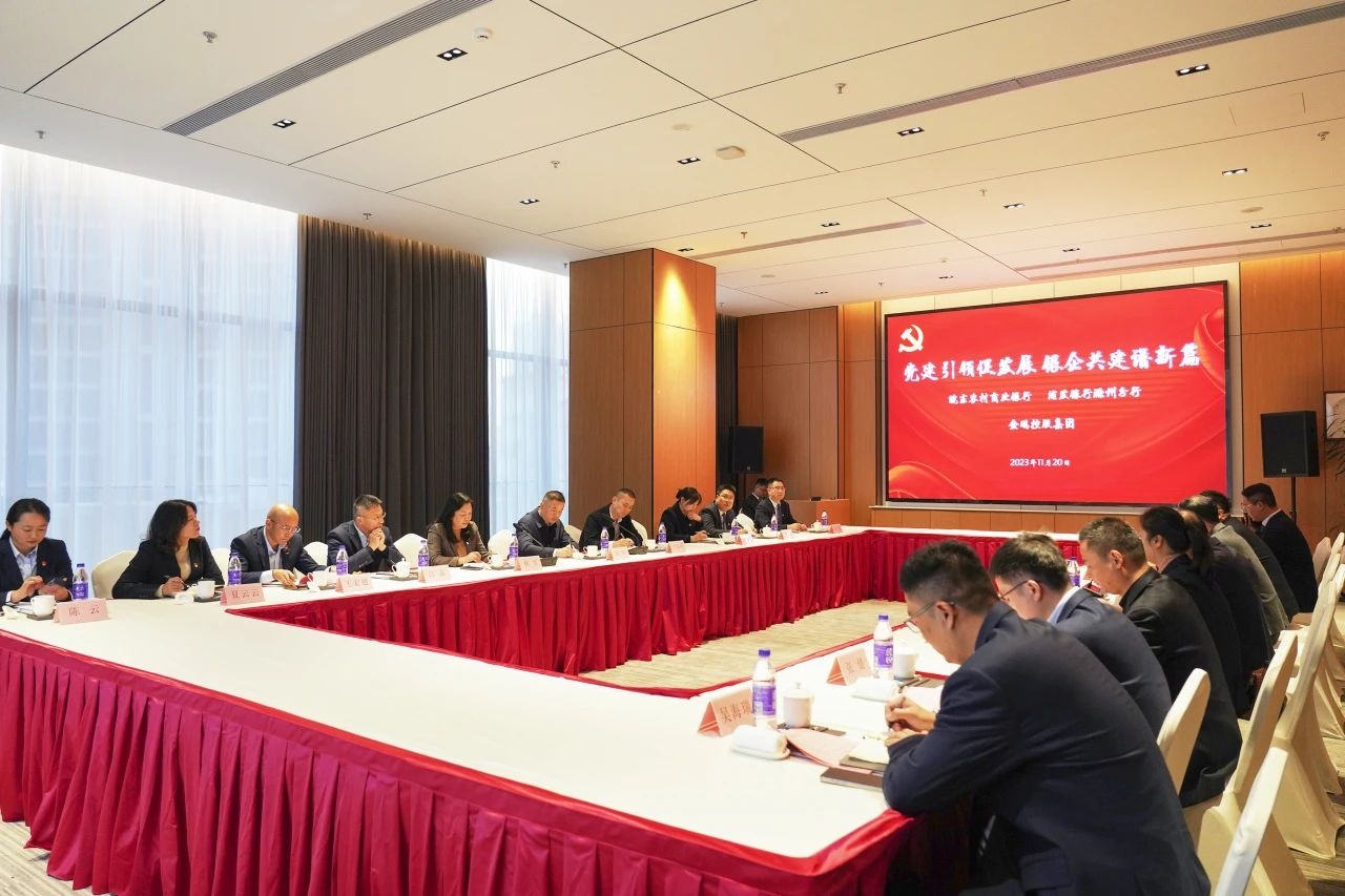 座談會(huì)上,三方介紹了各自黨建工作的開(kāi)展情況,并就如何促進(jìn)黨建與業(yè)務(wù)融合、密切銀企聯(lián)系與發(fā)展等方面展開(kāi)交流探討。金鵬控股集團(tuán)黨委副書(shū)記、副總裁張啟國(guó)主持活動(dòng)。