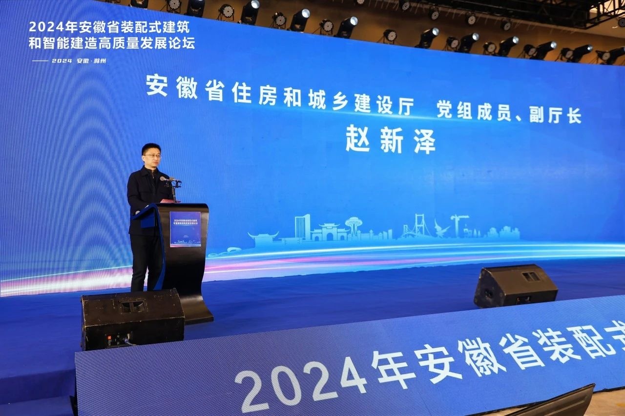 安徽省住房和城鄉(xiāng)建設(shè)廳黨組成員、副廳長趙新澤致辭,他表示,近年來,在裝配式建筑和智能建造發(fā)展方面,我省政策引領(lǐng)力顯著,科技支撐力堅實,產(chǎn)業(yè)發(fā)展的躍增,人才推動力彰顯。下一步,推進建筑業(yè)高質(zhì)量發(fā)展,應當以技術(shù)進步和科技創(chuàng)新為支撐,大力推進建筑工業(yè)化、數(shù)字化、智能化轉(zhuǎn)型升級,提高建筑業(yè)核心競爭力和創(chuàng)新能力,堅持標準先行、堅持科技賦能、堅持示范帶動,努力做高品質(zhì)建筑的典范、產(chǎn)業(yè)鏈融合的典范、數(shù)字化賦能的典范,為人民群眾建設(shè)好房子。