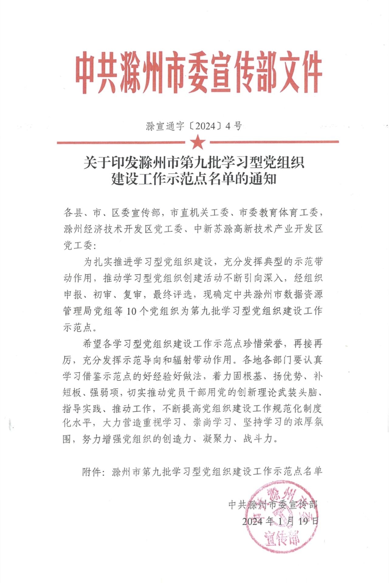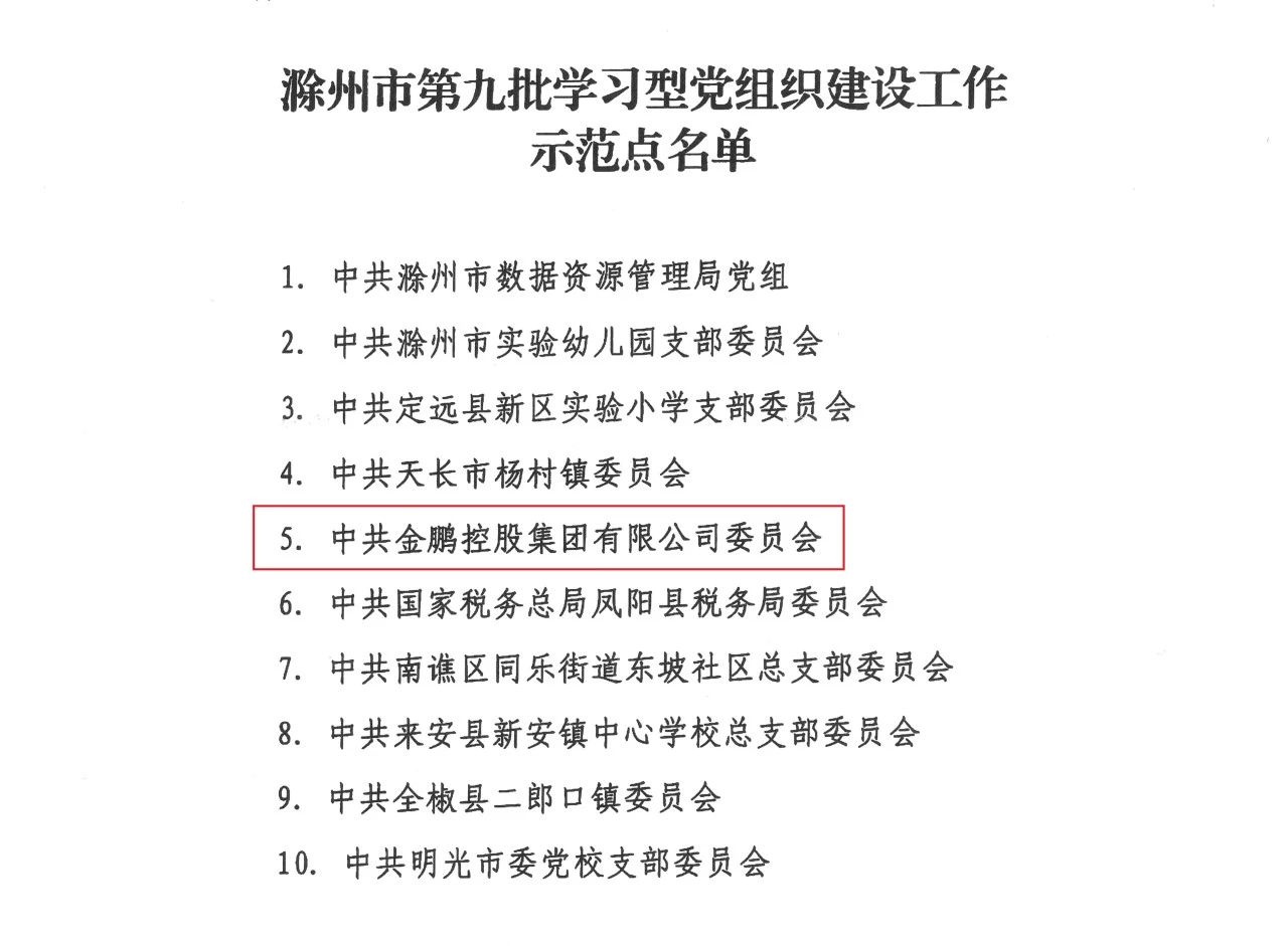 金鵬控股集團黨委榮獲滁州市第九批學(xué)習(xí)型黨組織建設(shè)工作示范點稱號