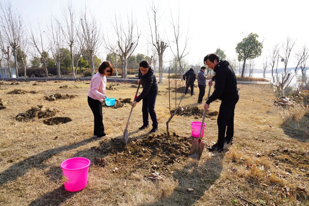 金鵬與建行滁州分行、交行滁州分行、興業(yè)銀行滁州分行在金鵬皇慶湖共同開展植樹活動