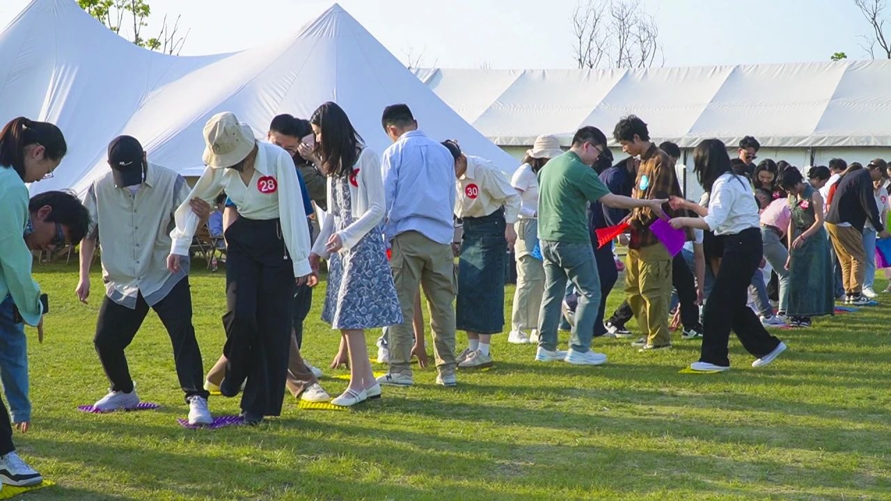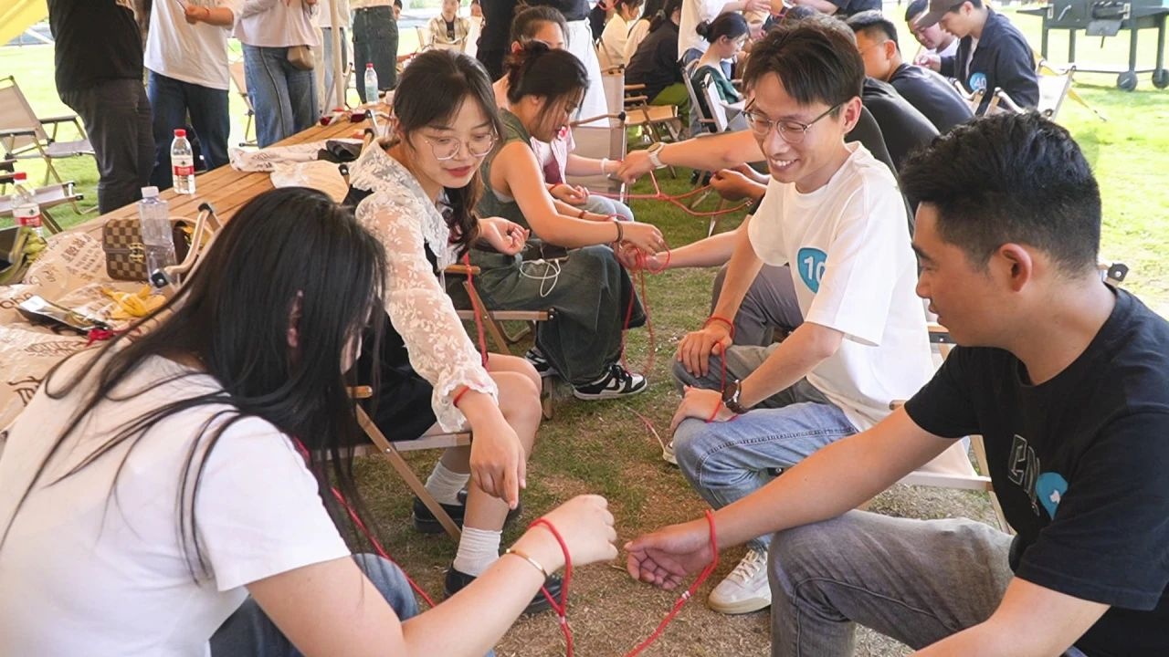 初夏時節(jié),金鵬皇慶湖繁花似錦、湖光瀲滟,沁人的花香和湖畔的微風中,都彌漫著甜甜的愛的氣息。青年男女依次上臺自我介紹,展現(xiàn)個人風采,并通過“抓住機遇”“勇闖愛河”“心有千千結(jié)”一系列精心設(shè)計的互動游戲增進了解、拉近距離。