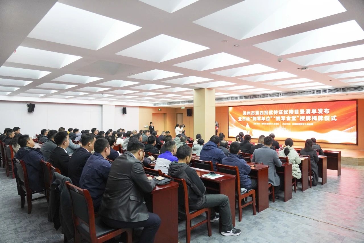 市退役軍人事務(wù)局黨組書記、局長丁勇宣布滁州市第四批優(yōu)待證優(yōu)待目錄清單正式啟用并講話。他指出,優(yōu)待項(xiàng)目正式啟動(dòng)和“擁軍單位”“擁軍食堂”揭牌,是落實(shí)退役軍人事務(wù)部優(yōu)待政策座談會(huì)精神、貫徹退役軍人事務(wù)部等9部門《關(guān)于加強(qiáng)優(yōu)撫政策宣傳普及和精準(zhǔn)落實(shí)的通知》要求的具體行動(dòng),標(biāo)志著我市退役軍人服務(wù)保障邁上新臺階。要加大優(yōu)待證宣傳力度,不斷擴(kuò)大優(yōu)待目錄范圍,豐富優(yōu)待證使用功能,確保各項(xiàng)優(yōu)撫政策普及落實(shí)到位、優(yōu)待目錄清單落地落實(shí),不斷提高優(yōu)待證“含金量”。同時(shí),不斷強(qiáng)化愛國擁軍宣傳教育,壯大社會(huì)化擁軍隊(duì)伍,搭建社會(huì)化優(yōu)待工作新平臺。