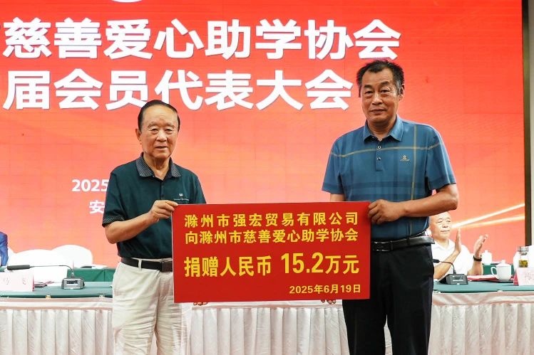 孫元武會長表示,協(xié)會眾多愛心企業(yè)家、愛心人士及協(xié)會領(lǐng)導班子成員展現(xiàn)了令人動容的社會擔當,一筆筆愛心捐款,一次次圓夢行動,播撒著人間的大愛。其中,強宏貿(mào)易十余年如一日,每年堅持捐款15.2萬元;安徽耀達電機不僅堅持協(xié)會捐款,還主動額外資助特困家庭、捐助西藏災區(qū);朗潤新能源、南譙生輝新型建材、金尚勞務(wù)、美眾汽車、明光華億水泥、銀禾園林、友西混凝土等企業(yè)和企業(yè)家,心系學子,以“企業(yè)再難,不能耽誤孩子前程”信念,毅然堅持捐款。金鵬作為創(chuàng)始單位和會長單位,克服自身經(jīng)營壓力,本屆向協(xié)會捐款300多萬元,并長期無償提供會議場地、物資及服務(wù)保障。還有很多愛心人士及協(xié)會領(lǐng)導班子成員堅持個人捐款,為寒門學子慷慨解囊。