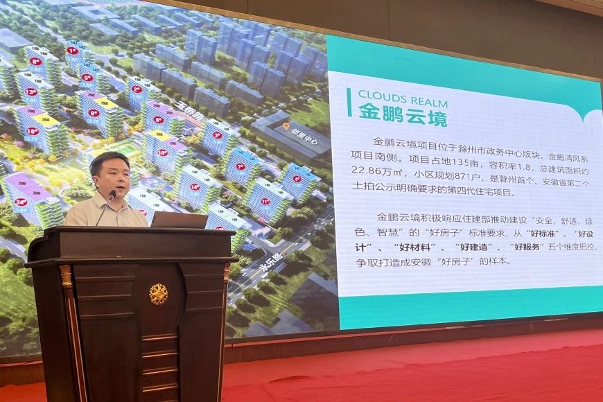 推介會(huì)上,金鵬產(chǎn)業(yè)研究院院長廖智強(qiáng)分享了“金鵬5H好房”標(biāo)桿案例-云境項(xiàng)目,從“好標(biāo)準(zhǔn)”“好設(shè)計(jì)”“好材料”“好建造”“好服務(wù)”五個(gè)維度,展現(xiàn)了金鵬打造“好房子”的全生命周期技術(shù)服務(wù)體系及實(shí)施路徑。金鵬·云境實(shí)景廖智強(qiáng)院長表示,金鵬30余年來,在建筑領(lǐng)域深耕發(fā)展,形成了極具核心競爭力的上下游全產(chǎn)業(yè)鏈優(yōu)勢(shì)。金鵬努力打造安徽“好房子”樣本,正在完善企業(yè)標(biāo)準(zhǔn),積極參編國標(biāo)圖集、安徽省行業(yè)標(biāo)準(zhǔn)等。金鵬·云境-云棲空中花園創(chuàng)新打造的第四代住宅云境項(xiàng)目,集“美學(xué)家、綠色家、安全家、智慧家、舒適家”為一體,從規(guī)劃設(shè)計(jì)、建筑設(shè)計(jì)、裝飾設(shè)計(jì)、門窗幕墻設(shè)計(jì)、裝配式設(shè)計(jì)、BIM設(shè)計(jì)、室外配套基礎(chǔ)設(shè)施設(shè)計(jì)、園林環(huán)境設(shè)計(jì)、智慧整裝設(shè)計(jì)等各方面,引領(lǐng)“好房子”建設(shè)。金鵬·云境架空層及下沉庭院建造過程中,云境項(xiàng)目甄選品質(zhì)材料,配套金鵬高品質(zhì)門窗,依托金鵬數(shù)字化工廠和施工駕駛艙,在全國率先運(yùn)用“工業(yè)互聯(lián)網(wǎng)+智能建造+金鵬5H好房”,采用金鵬新型裝配式高層住宅建造體系,實(shí)現(xiàn)項(xiàng)目“品質(zhì)好、工期優(yōu)、成本低”。金鵬·云境網(wǎng)球中心金鵬·云境幻影車庫同時(shí),基于十余年物業(yè)場景運(yùn)營能力,金鵬為好房子配套5H好服務(wù)品牌-至臻服務(wù),讓業(yè)主享受更有品質(zhì)、更有價(jià)值的美好生活,助力國家推進(jìn)“好房子、好小區(qū)、好社區(qū)、好城區(qū)”建設(shè)。